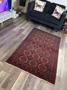 An authentic handmade Baluch rug that embodies tradition, craftsmanship, and warmth. Woven from natural wool, it adds timeless beauty and comfort to your home.